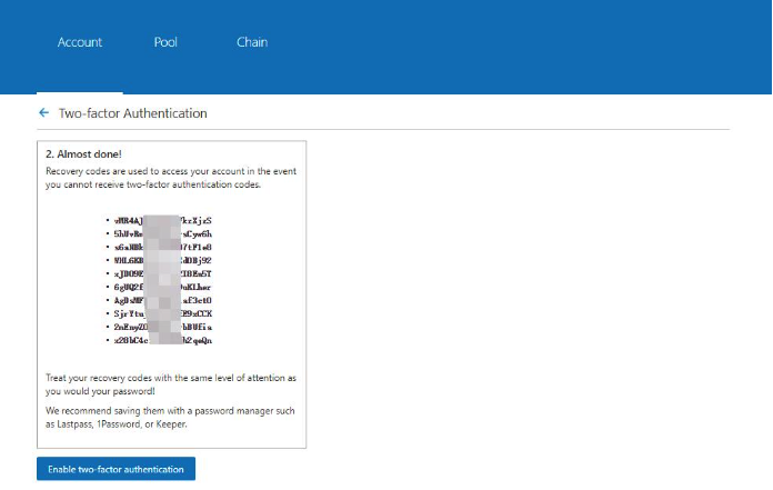 Important reminder:If you accidentally did not save the recovery code when doing step 5,we suggest you turn this feature off and reconfigure it.